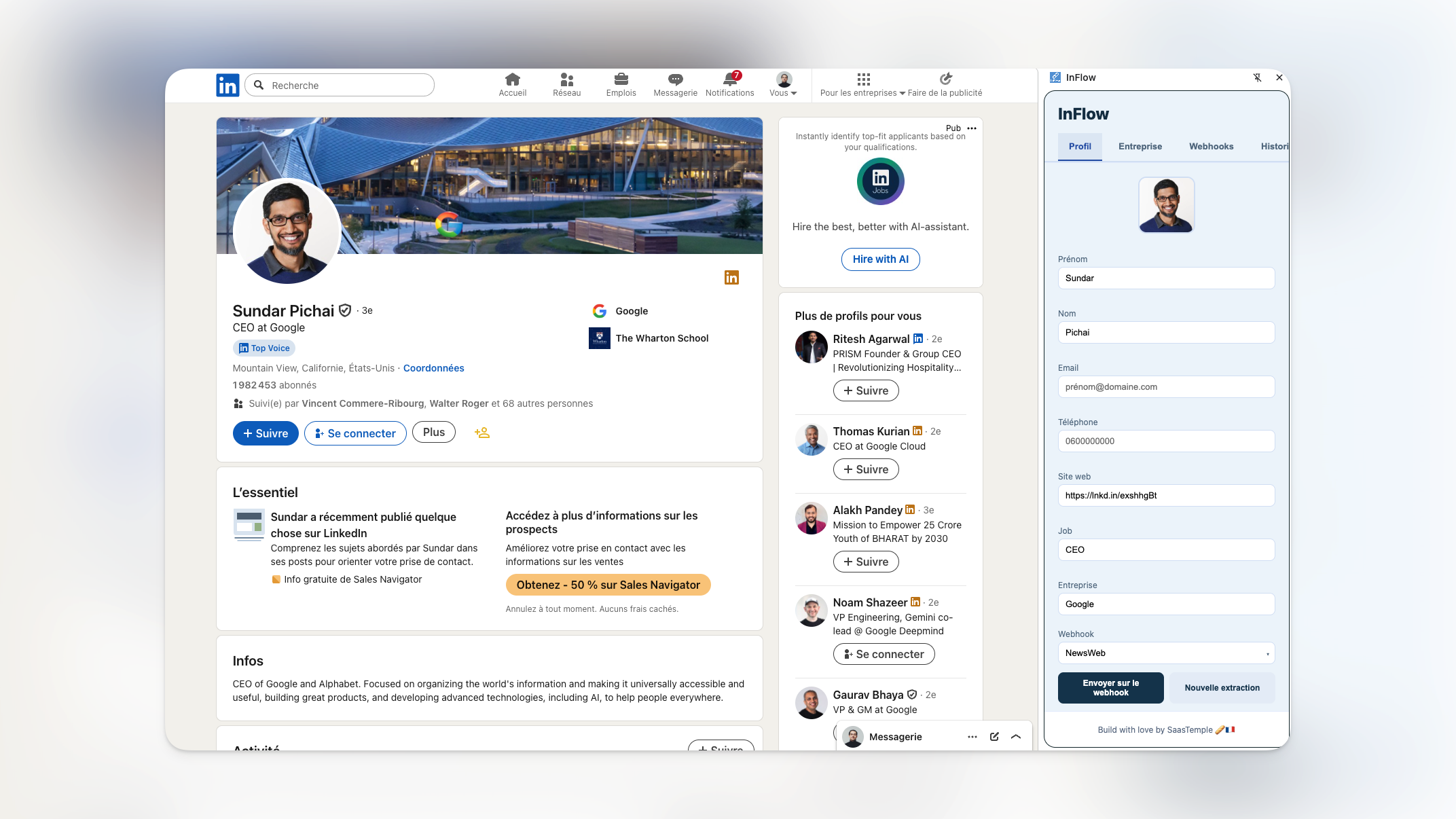 Scrapper les profils ou entreprises linkedin que vous visitez & envoyez les informations sur de contact sur les webhook de votre choix